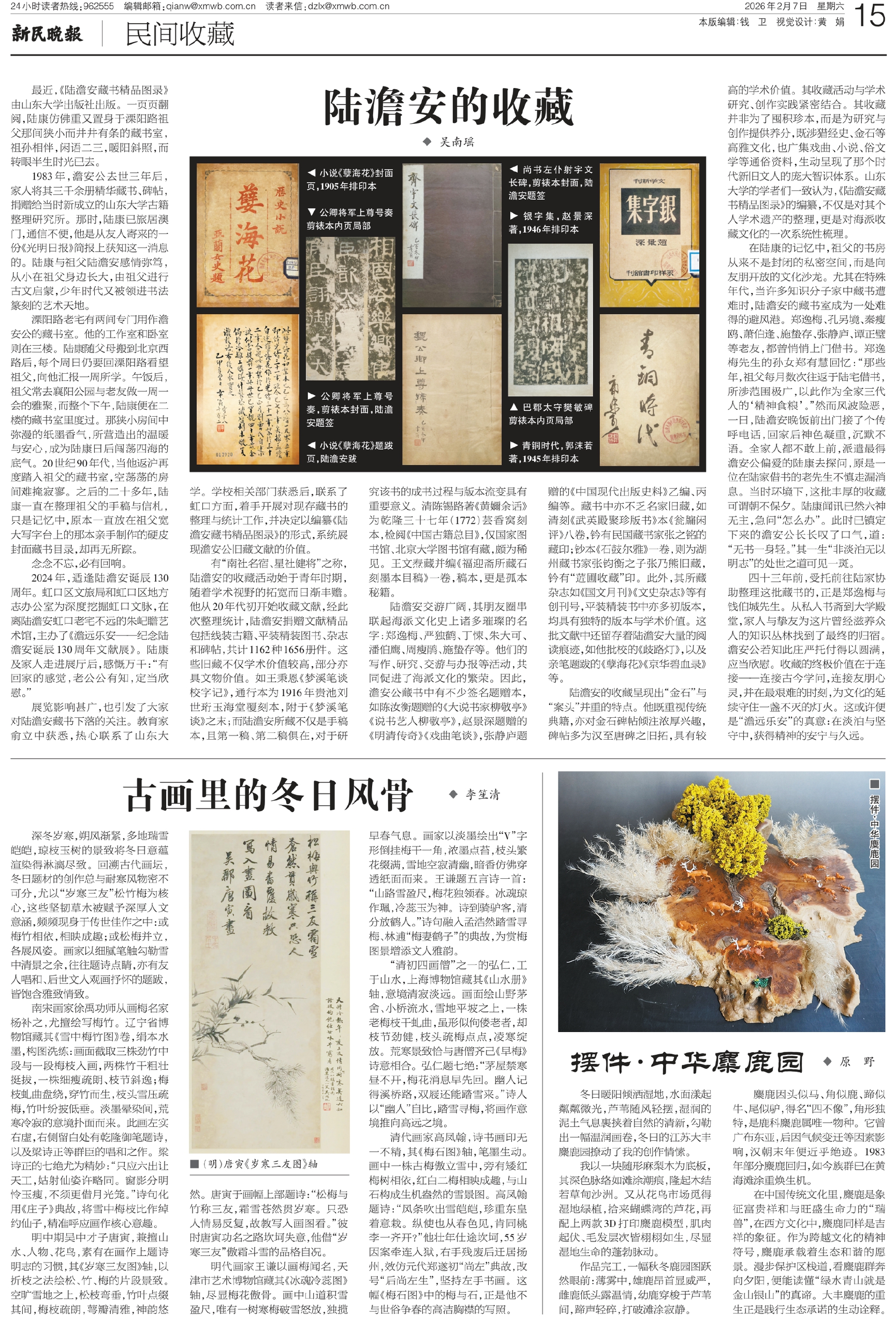 四十三年前,受托前往陆家协助整理这批藏书的,正是郑逸梅与钱伯城先生。从私人书斋到大学殿堂,家人与挚友为这片曾经滋养众人的知识丛林找到了最终的归宿。澹安公若知此庄严托付得以圆满,应当欣慰。收藏的终极价值在于连接——连接古今学问,连接友朋心灵,并在最艰难的时刻,为文化的延续守住一盏不灭的灯火。这或许便是“澹远乐安”的真意:在淡泊与坚守中,获得精神的安宁与久远。