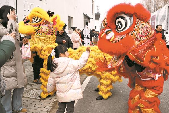喜庆的舞狮表演吸引小观众互动