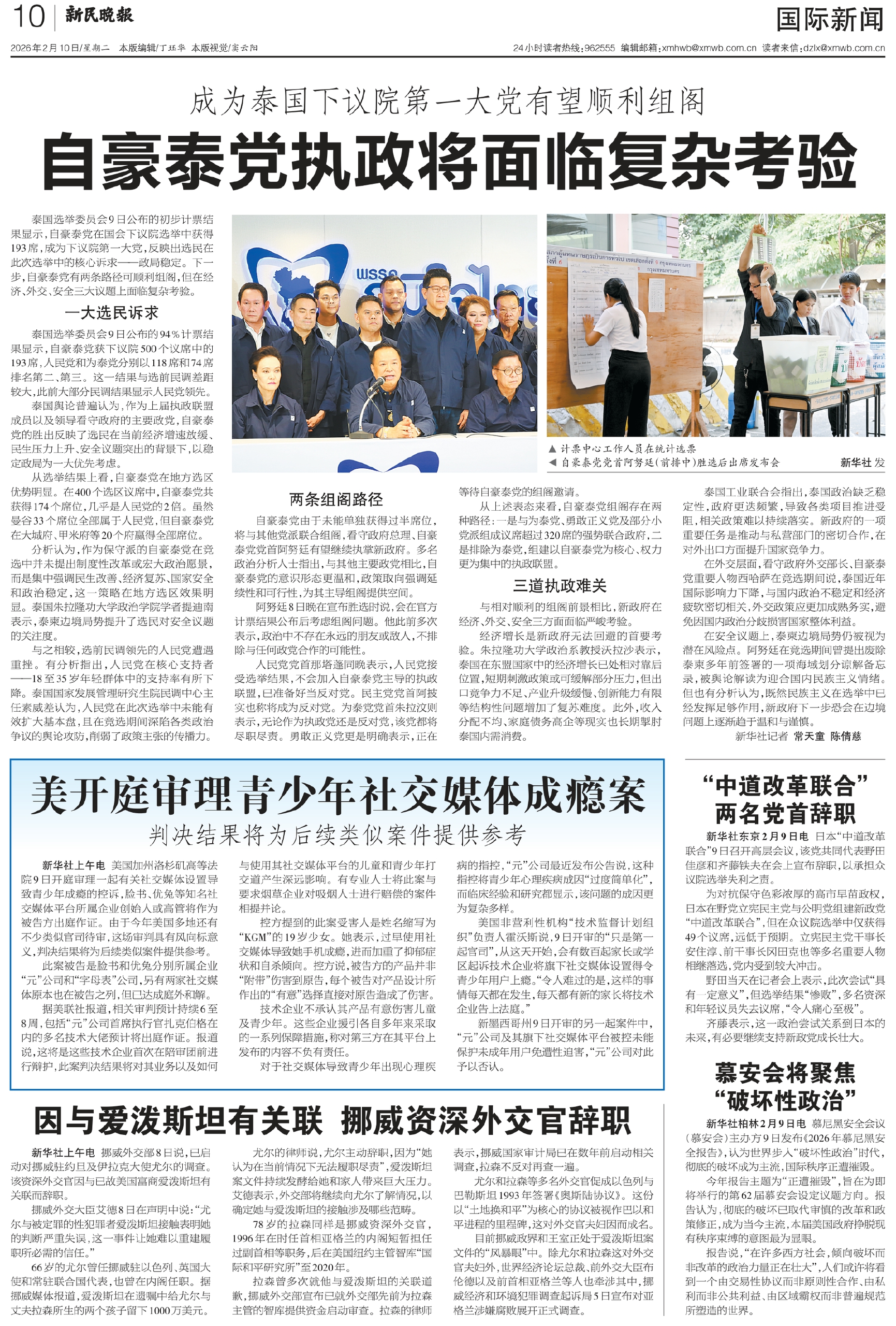 泰国选举委员会9日公布的初步计票结果显示,自豪泰党在国会下议院选举中获得193席,成为下议院第一大党,反映出选民在此次选举中的核心诉求——政局稳定。下一步,自豪泰党有两条路径可顺利组阁,但在经济、外交、安全三大议题上面临复杂考验。