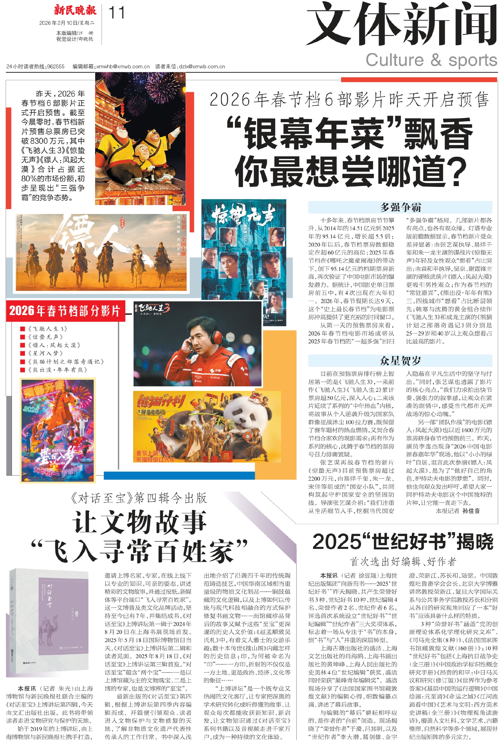 另一部“团队作战”的电影《镖人:风起大漠》也以近1600万元的票房跻身春节档预售前三。昨天,演员李连杰现身“2026中国电影新春嘉年华”现场,他以“小小的绿叶”自居,坦言此次参演《镖人:风起大漠》,是为了“做好自己的角色,护持功夫电影的梦想”。同时,他也向观众发出呼吁,希望大家一同护持功夫电影这个中国独特的片种,让它能一直走下去。本报记者 孙佳音