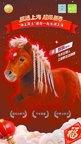 “海上萌主”五位(组)成员来自上海野生动物园、上海海昌海洋公园、上海动物园等景区,是经千万网友镜头见证成长的“网红”。其中,上海野生动物园13岁的欧洲矮马飘飘(左图),作为“马年主理人”化身新春“新年福使”,其轻快的小碎步是迎宾巡游队伍中的亮眼风景,还现身上海科技馆马年科技文化特展开幕式,成为IP中的“惊喜彩蛋”。