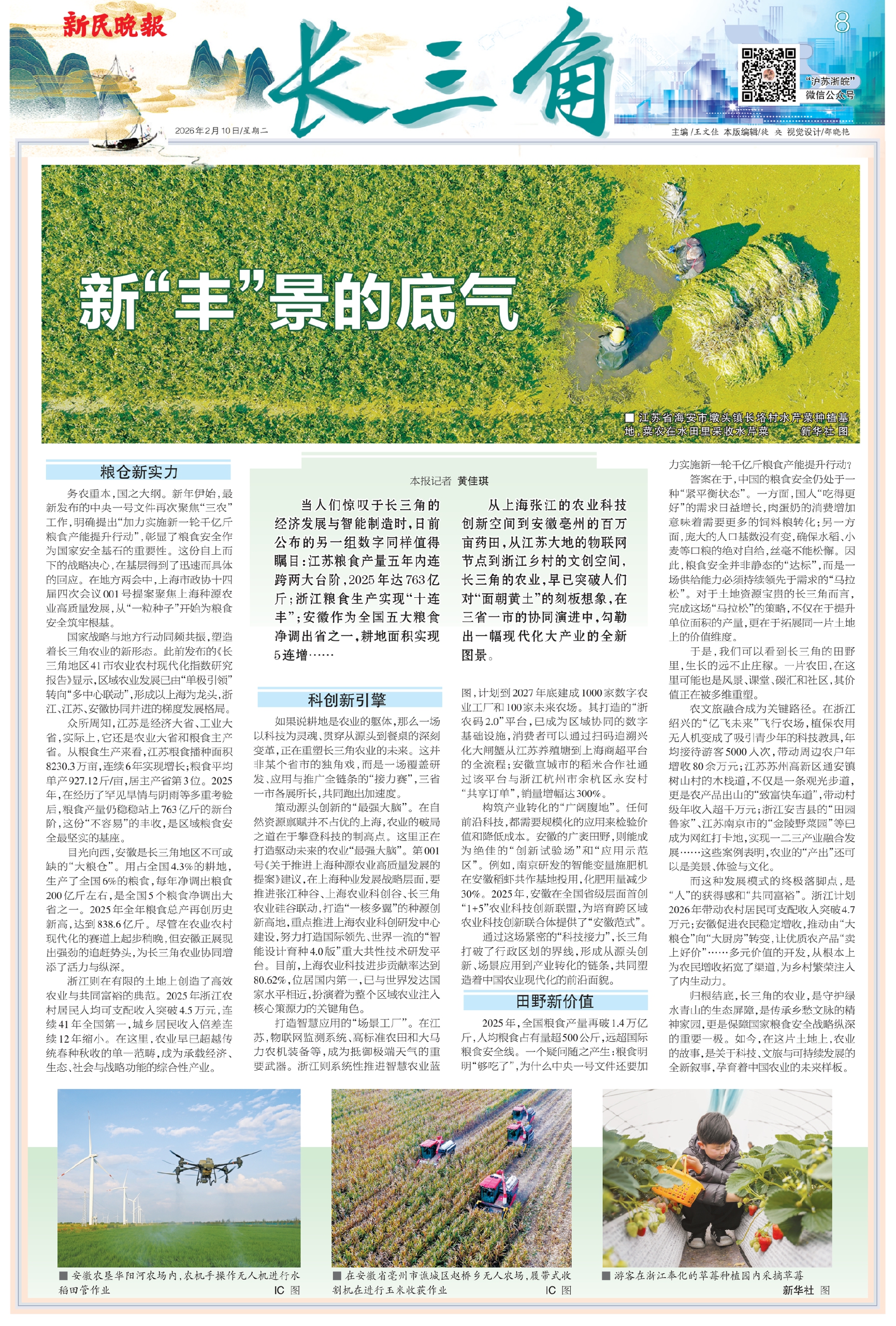 归根结底,长三角的农业,是守护绿水青山的生态屏障,是传承乡愁文脉的精神家园,更是保障国家粮食安全战略纵深的重要一极。如今,在这片土地上,农业的故事,是关于科技、文旅与可持续发展的全新叙事,孕育着中国农业的未来样板。