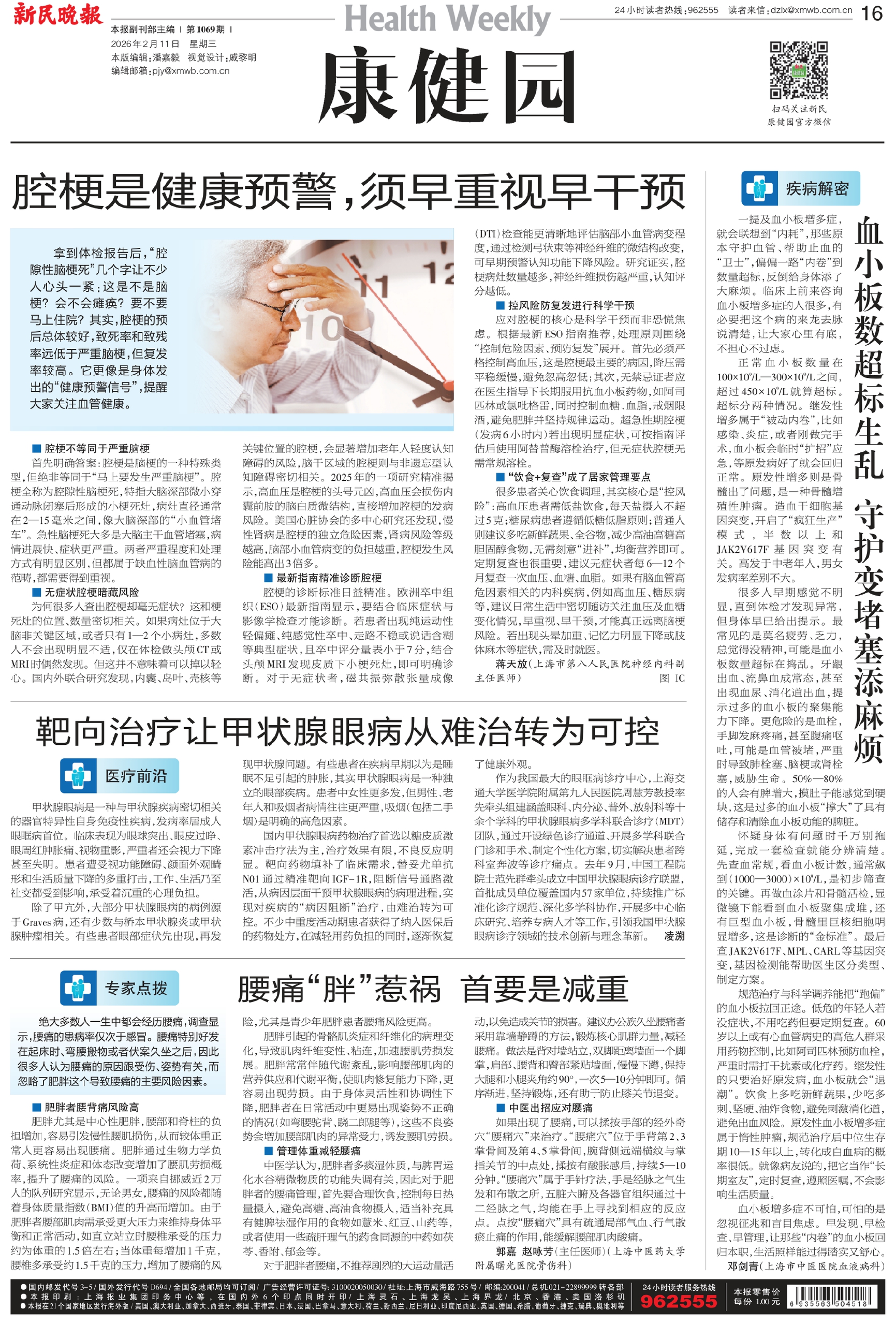 很多患者关心饮食调理,其实核心是“控风险”:高血压患者需低盐饮食,每天盐摄入不超过5克;糖尿病患者遵循低糖低脂原则;普通人则建议多吃新鲜蔬果、全谷物,减少高油高糖高胆固醇食物,无需刻意“进补”,均衡营养即可。定期复查也很重要,建议无症状者每6—12个月复查一次血压、血糖、血脂。如果有脑血管高危因素相关的内科疾病,例如高血压、糖尿病等,建议日常生活中密切随访关注血压及血糖变化情况,早重视、早干预,才能真正远离脑梗风险。若出现头晕加重、记忆力明显下降或肢体麻木等症状,需及时就医。