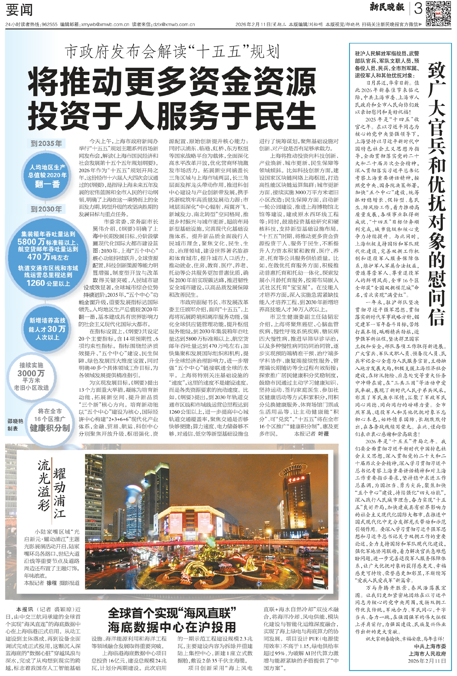 今天上午,上海市政府新闻办举行“十五五”规划主题系列首场新闻发布会,解读《上海市国民经济和社会发展第十五个五年规划纲要》。2026年作为“十五五”规划开局之年,这份经市十六届人大四次会议通过的《纲要》,是指导上海未来五年发展的宏伟蓝图和全市人民的行动纲领,明确了上海在这一乘势而上的全面发力期、转型升级的攻坚决胜期的发展目标与重点任务。