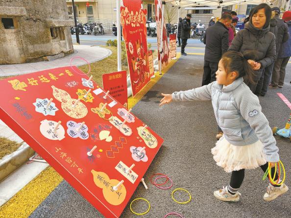 今天是农历南方小年。冬日暖阳洒满静安区彭浦新村街道彭一小区的中心绿地广场。大红灯笼高悬,喜庆春联映照笑脸,一场以“归家与传承”“团圆与共融”为主题的新春团圆嘉年华拉开了帷幕。