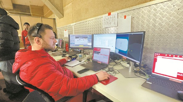 这是2026年米兰-科尔蒂纳冬奥会花样滑冰赛场上,观众首次见到的画面。作为冬奥会正式计时,欧米茄第32次为奥运盛会保驾护航,如今,这家百年制表品牌将触角伸向了计算机视觉技术。跟随欧米茄全球计时CEO阿兰·佐布里斯特,本报记者得以进入米兰滑冰馆后台(见上图陶邢莹 摄),听其讲述比赛背后的故事。