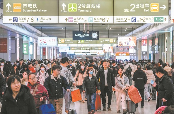 今天上午,大量旅客抵达虹桥火车站,到达层人头攒动 本报记者 陈梦泽 摄