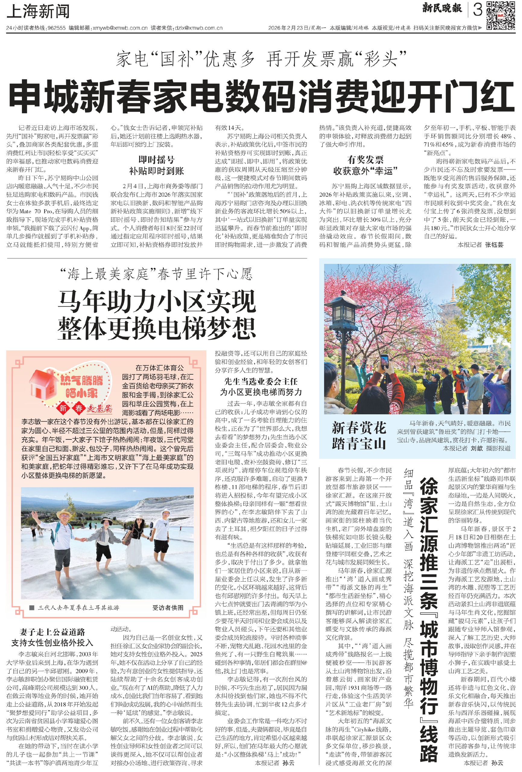 记者近日走访上海市场发现,先用“国补”购家电,再开发票赢“彩头”,叠加商家各类配套优惠,多重消费红利让市民轻松享受“买买买”的幸福感,也推动家电数码消费迎来新春开门红。
