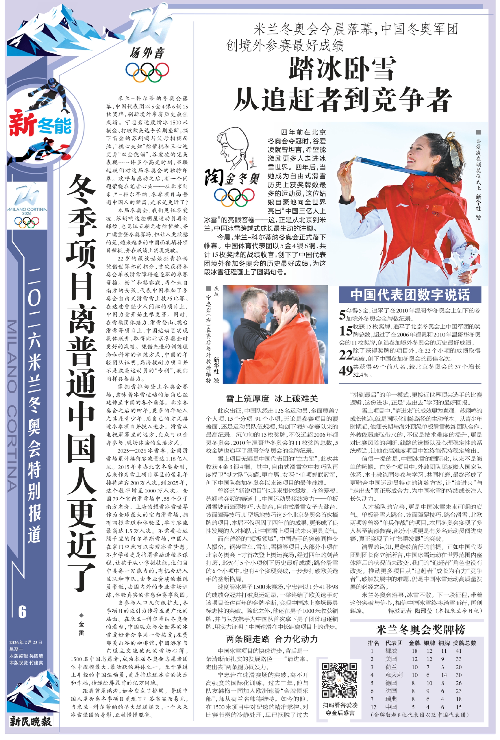 当参与人口几何级扩大,冬季项目的吸引力传导至更广泛的层面。在米兰-科尔蒂纳冬奥会的看台,中国观众与全世界的冰雪爱好者分享同一份热爱;在费耶美山谷的咖啡馆,中国游客与东道主交流彼此的雪场心得。1500名中国志愿者,成为本届冬奥会志愿者团体中规模最大、最活跃的群体之一。至于赛道上年轻的中国运动员,更是将追逐冰雪的快乐和幸福,传递给屏幕前的亿万同胞。