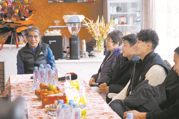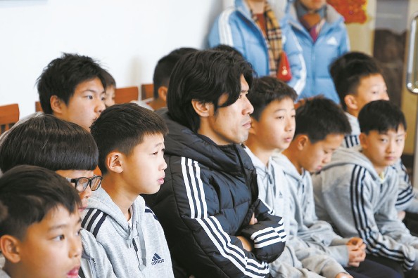 颜骏凌(右)武磊(右二)回到根宝基地给恩师拜年 张晓露 摄