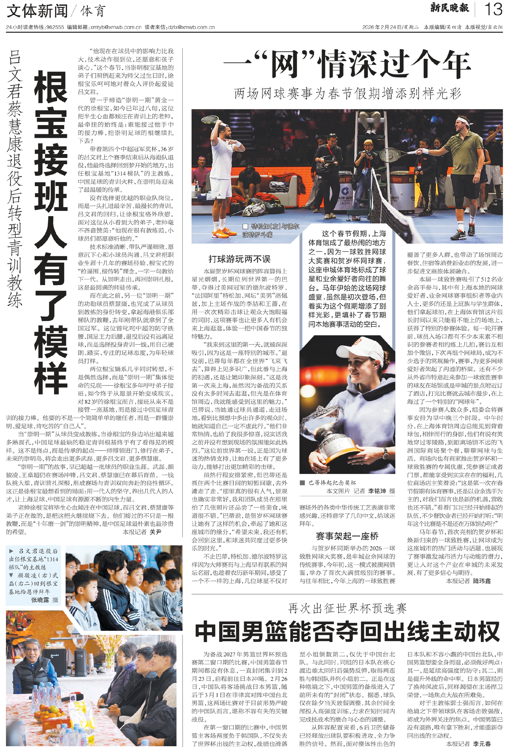 老帅徐根宝将毕生心血倾注在中国足球,而吕文君、蔡慧康等弟子正在做的,是把这把火继续烧下去。他们接过的不只是一根教鞭,而是“十年磨一剑”的崇明精神,是中国足球最朴素也最珍贵的希望。 本报记者 关尹