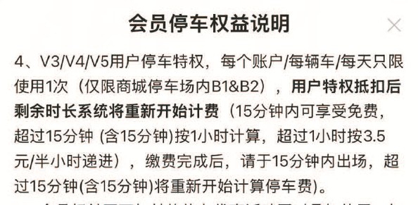商场的“会员停车权益说明”