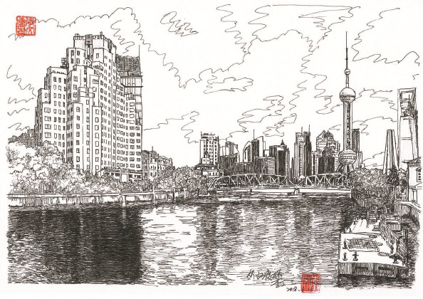外白渡桥(钢笔画)