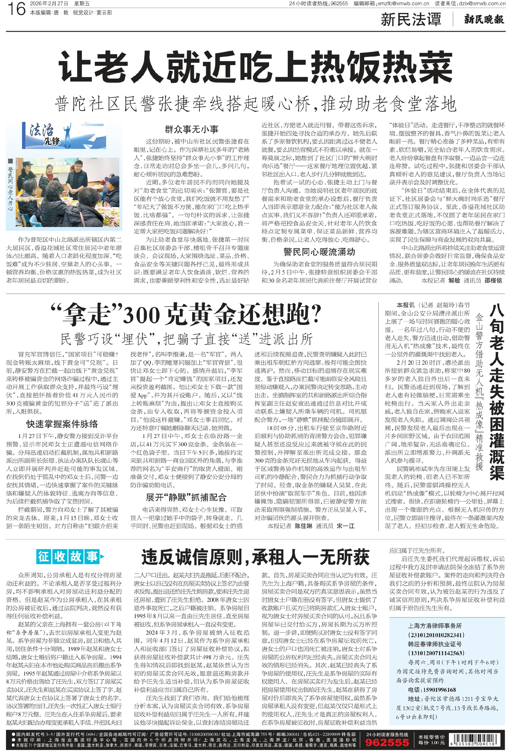 中山北路派出所将持续关注助老食堂运营情况,联合居委会做好日常监督,确保食品安全、服务质量双达标,让老年居民晚年生活更有品质、更有温度,让警民同心的暖流在社区持续涌动。 本报记者 解敏 通讯员 邵槿铭