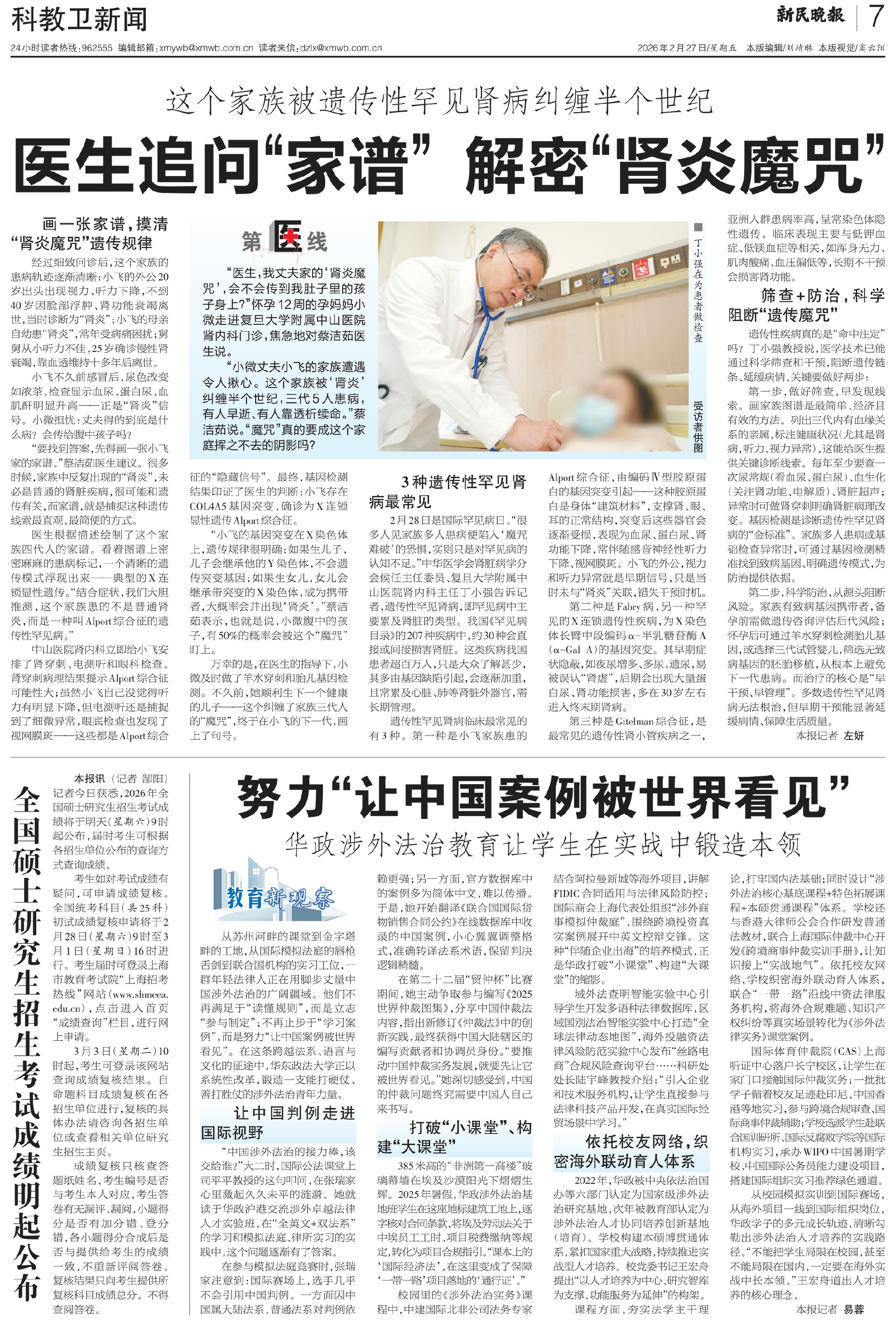 2月28日是国际罕见病日。“很多人见家族多人患病便陷入‘魔咒难破’的恐惧,实则只是对罕见病的认知不足。”中华医学会肾脏病学分会候任主任委员、复旦大学附属中山医院肾内科主任丁小强告诉记者,遗传性罕见肾病,即罕见病中主要累及肾脏的类型。我国《罕见病目录》的207种疾病中,约30种会直接或间接损害肾脏。这类疾病我国患者超百万人,只是大众了解甚少,其多由基因缺陷引起,会逐渐加重,且常累及心脏、肺等肾脏外器官,需长期管理。