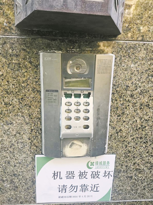 而在业委会换届改选停滞后,小区的管理陷入了“失序”状态。记者在现场看到:地下停车库的消防管道被割断,锈迹斑斑;绿化带里种着不适宜上海气候的植物,由于“水土不服”已是枯黄一片;多幢住宅楼的门禁对讲系统失灵,电线裸露在外,形同虚设……