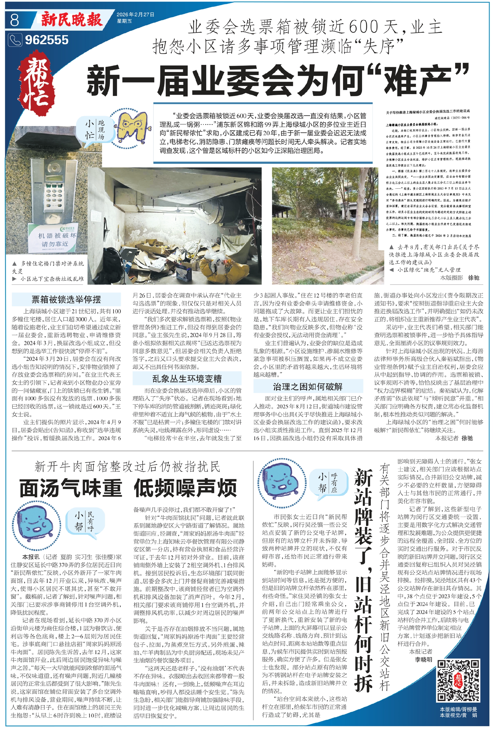 上海绿城小区的“治理之困”何时能够破解?“新民帮侬忙”将继续关注。
