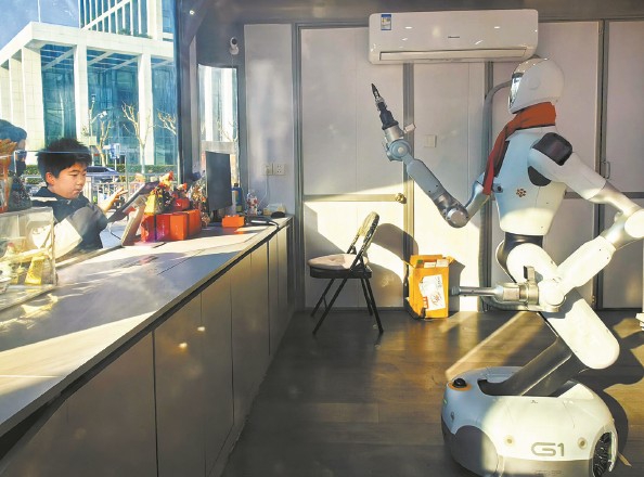 在上海街头的“银河太空舱”,机器人小Gal在为小顾客服务 杨建正 摄