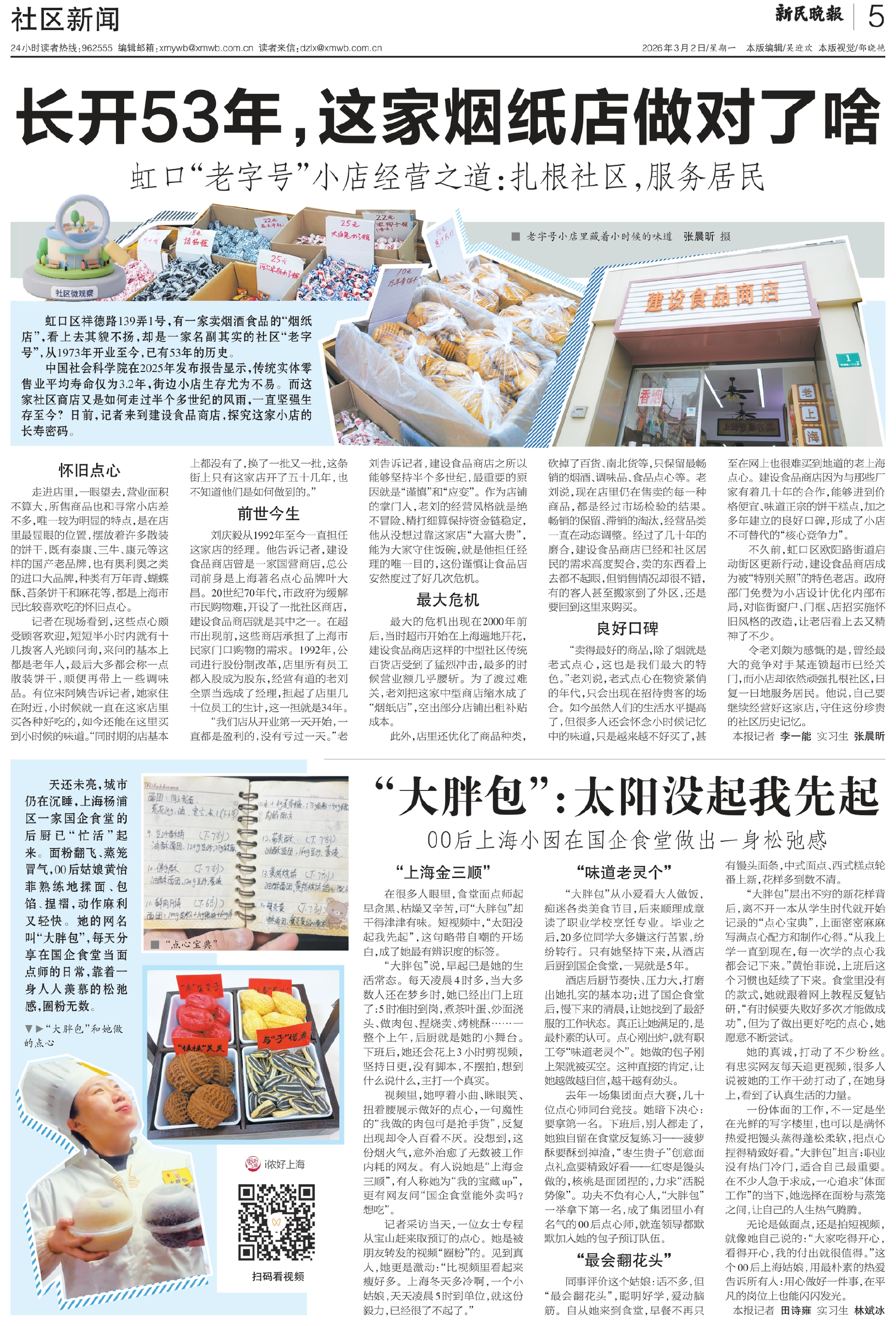 不久前,虹口区欧阳路街道启动街区更新行动,建设食品商店成为被“特别关照”的特色老店。政府部门免费为小店设计优化内部布局,对临街窗户、门框、店招实施怀旧风格的改造,让老店看上去又精神了不少。