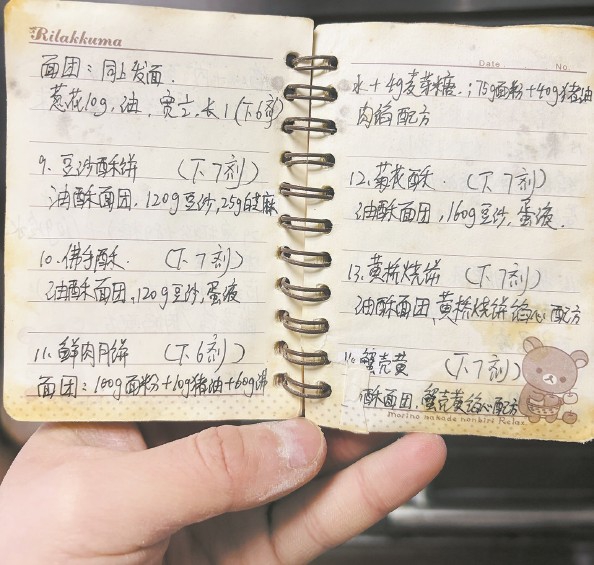 “大胖包”层出不穷的新花样背后,离不开一本从学生时代就开始记录的“点心宝典”,上面密密麻麻写满点心配方和制作心得。“从我上学一直到现在,每一次学的点心我都会记下来。”黄怡菲说,上班后这个习惯也延续了下来。食堂里没有的款式,她就跟着网上教程反复钻研,“有时候要失败好多次才能做成功”,但为了做出更好吃的点心,她愿意不断尝试。