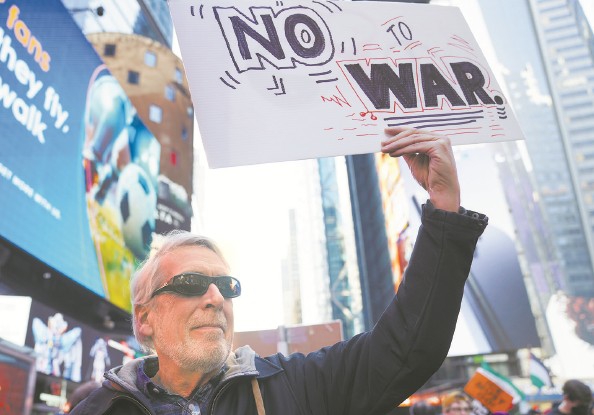 纽约民众举行集会游行,抗议美国和以色列军事打击伊朗 本版图片 新华社 发