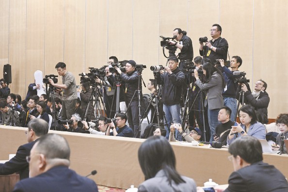 中外记者架起“长枪短炮”聚焦上海代表团 张驰 摄