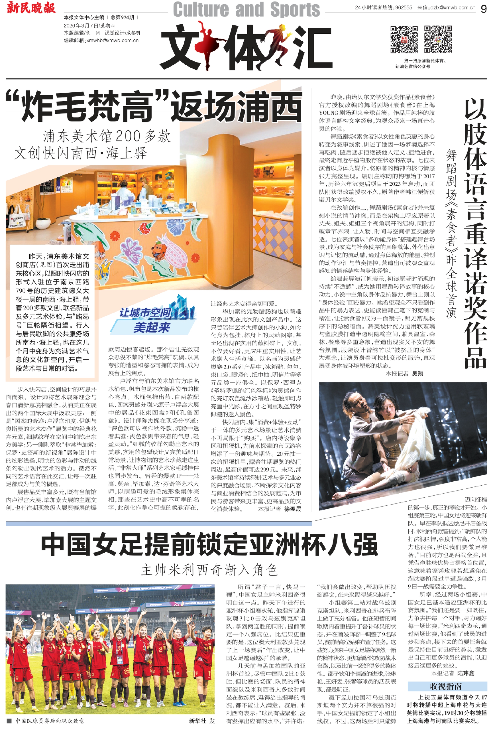 收视指南 以肢体语言重译诺奖作品 中国女足提前锁定亚洲杯八强 “炸毛梵高”返场浦西