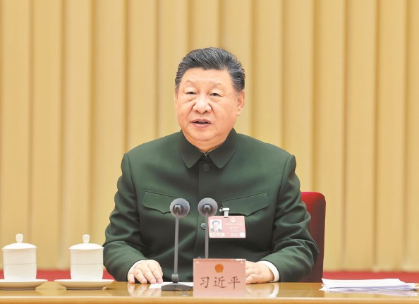 3月7日下午,中共中央总书记、国家主席、中央军委主席习近平出席十四届全国人大四次会议解放军和武警部队代表团全体会议并发表重要讲话 新华社记者 李刚 摄