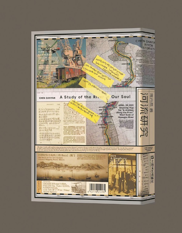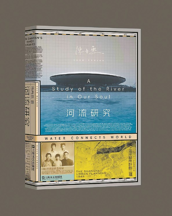 浅灰格子的天空上是她的手写名字,天空渐变为浅蓝色连接陆地与蓝色的河流,飞碟散着光晕于天水之间,极具未来感;明黄,天空蓝,纯黑,蒂芙尼蓝;中文,英文;一张泛黄的照片,一家五口,位于父母中间的小女孩便是陈丹燕。以上是“陈丹燕的上海”系列新作《河流研究》封面的一部分,蕴含着过去、现在与未来。人,依河流而生,江水汤汤,滋养着这座城,而城中人也在想着如何回馈它。