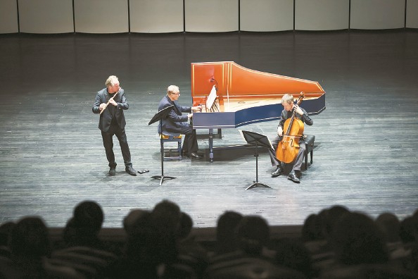 古乐传奇先驱、羽管键琴大师特雷沃·平诺克,携手著名长笛演奏家、柏林爱乐乐团长笛首席艾曼纽·帕胡德与维奥尔琴名家乔纳森·曼森,昨晚以古乐顶尖阵容亮相上海音乐厅,重现巴赫与泰勒曼的纯净原音。这也是三位名家亚洲巡演造访中国大陆的唯一一站,故而开票后即告售罄,加座后依然满员。