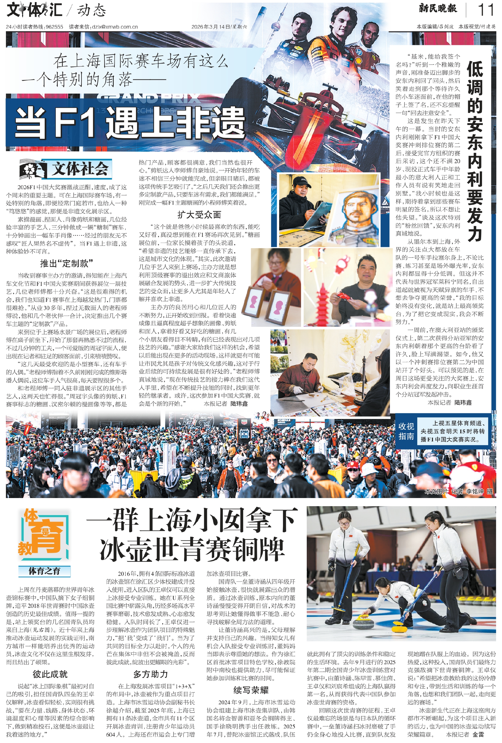 2026F1中国大奖赛激战正酣,速度,成了这个周末的重要主题。可在上海国际赛车场,有一处特别的角落,即便经常门庭若市,也给人一种“笃悠悠”的感觉,那便是非遗文化展示区。