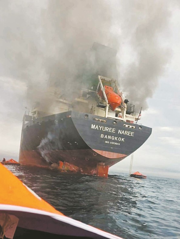一艘泰国货船在霍尔木兹海峡海域遭袭起火