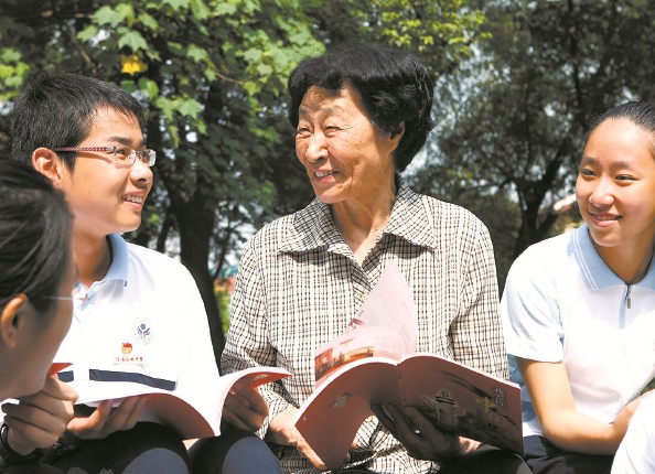 于漪和学生们在一起(资料照片)新华社发