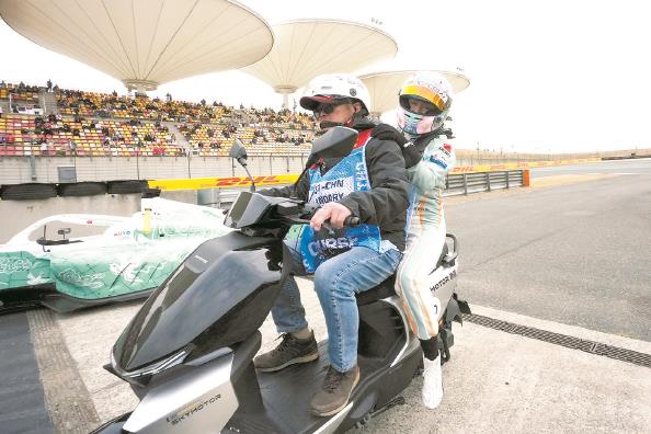 中国大奖赛首日的自由练习赛上,小红牛车队的林德布拉德因为赛车机械故障,停在赛道第15号弯角。他离开驾驶舱后,一辆轻便的两轮电动车早已在旁等候,随后将车手送回维修区(见左图)。