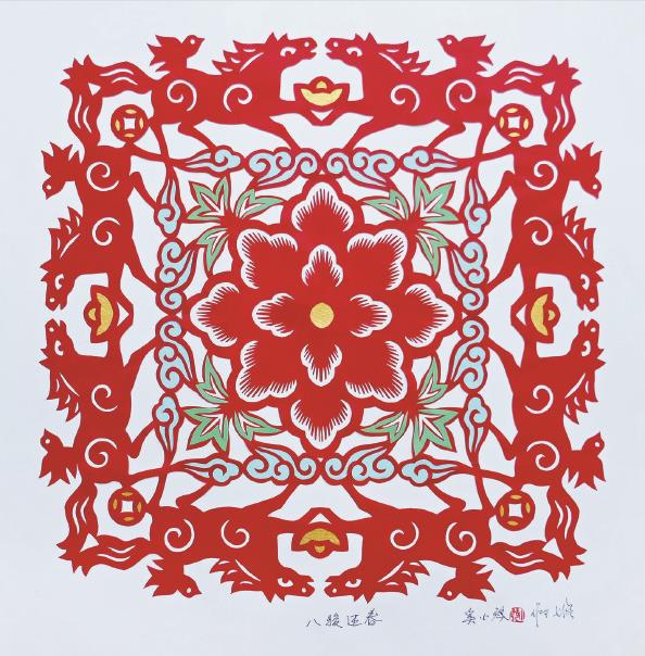 八骏迎春(剪纸)