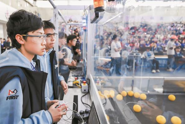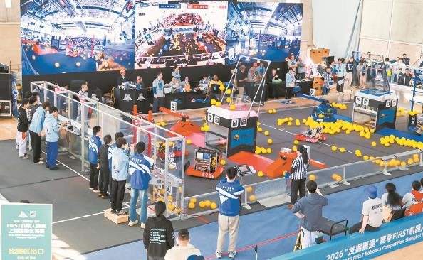 过去的这个周末,2026 FIRST机器人竞赛(FRC)在全球6个国家同步开赛,其中,上海国际区域赛淘汰赛在华东师范大学闵行校区体育馆燃情上演。本届赛事规模再创新高,中国队伍数量较上届增加了20%以上。 本报记者陶磊 易蓉摄影报道