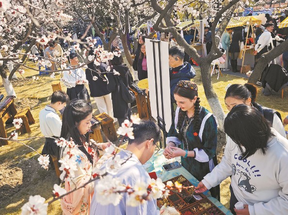 没有讲台与课本,却让文化自信、专业认同、身心健康与国际视野浸润“杏林中人”。近日,上海中医药大学的杏花进入花期,在校园里的杏花湾,2026年“杏花听语”文化艺术活动启幕,一场行走的“大思政课”在春日雅集里悄然铺展。 “杏会心声”心理健康集市别开生面。“六养工程”被设计成六个“心灵花园养护站”,学生手持《心灵养护册》,化身“见习园艺师”,在投壶、沙包等传统游戏中释放压力。 本报记者 陶磊 易蓉 摄影报道