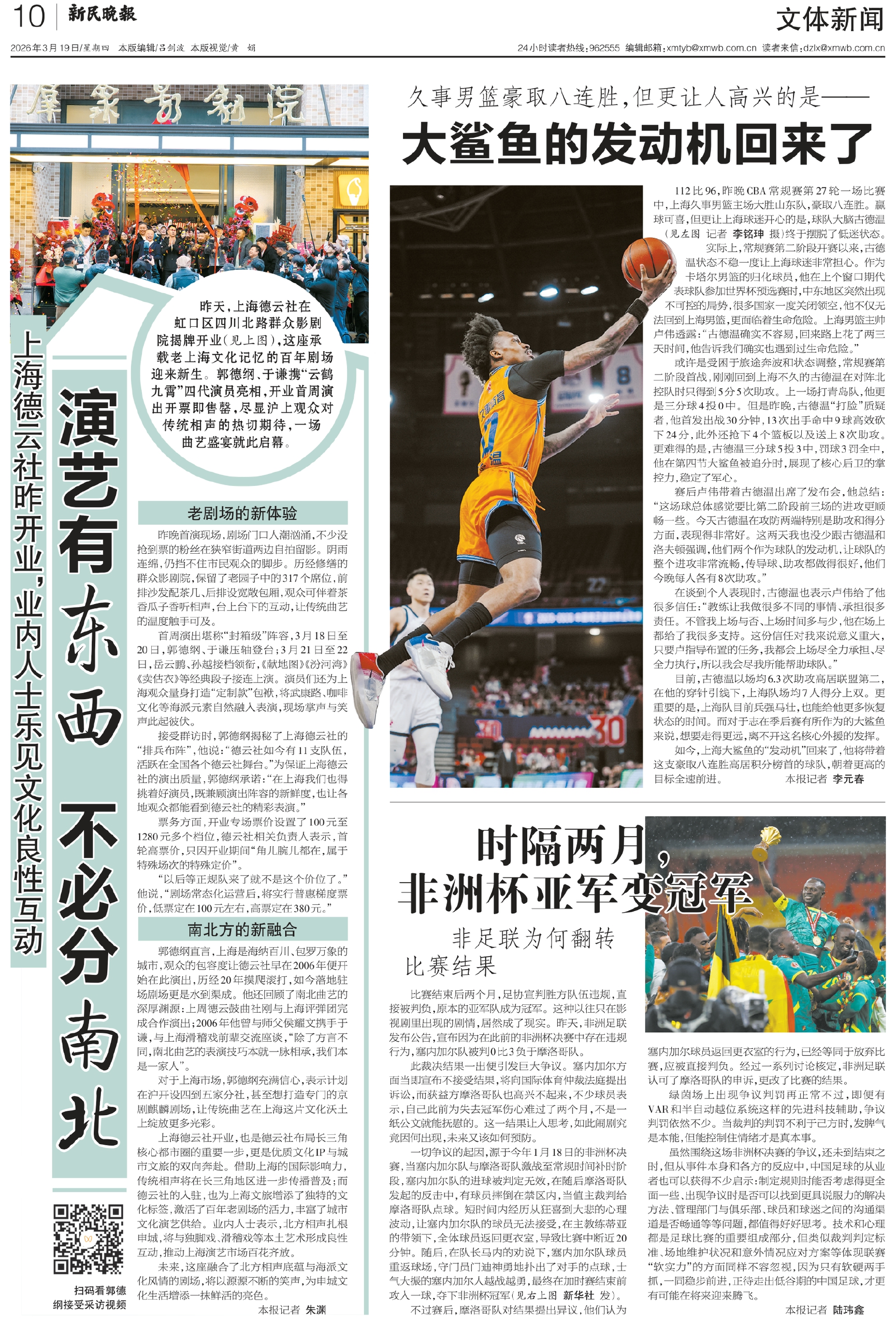 昨天,上海德云社在虹口区四川北路群众影剧院揭牌开业(见上图),这座承载老上海文化记忆的百年剧场迎来新生。郭德纲、于谦携“云鹤九霄”四代演员亮相,开业首周演出开票即售罄,尽显沪上观众对传统相声的热切期待,一场曲艺盛宴就此启幕。