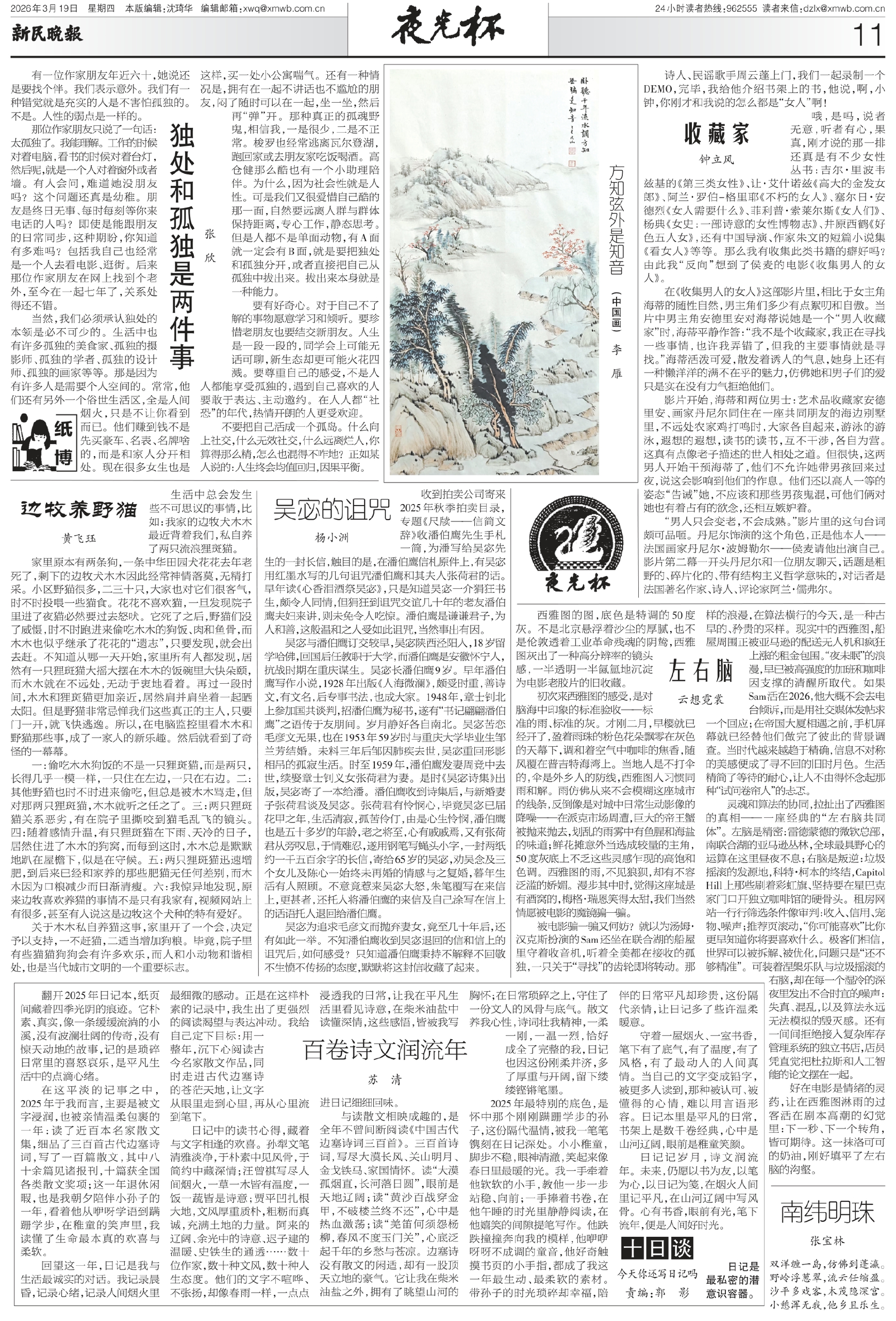 有一位作家朋友年近六十,她说还是要找个伴。我们表示意外。我们有一种错觉就是充实的人是不害怕孤独的。不是。人性的弱点是一样的。