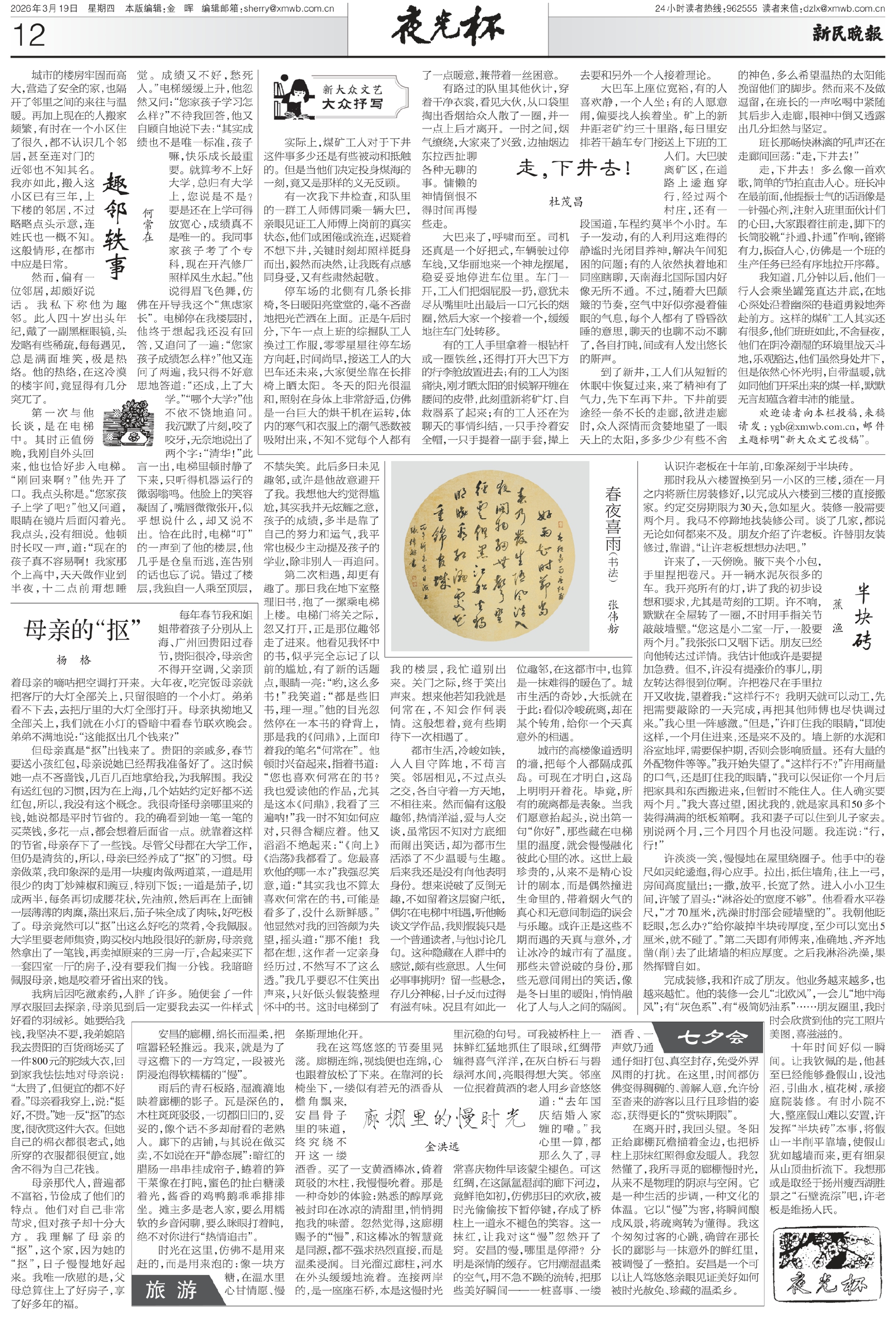 都市生活,冷峻如铁,人人自守阵地,不苟言笑。邻居相见,不过点头之交,各自守着一方天地,不相往来。然而偏有这般趣邻,热情洋溢,爱与人交谈,虽常因不知对方底细而闹出笑话,却为都市生活添了不少温暖与生趣。后来我还是没有向他表明身份。想来说破了反倒无趣,不如留着这层窗户纸,偶尔在电梯中相遇,听他畅谈文学作品,我则假装只是一个普通读者,与他讨论几句。这种隐藏在人群中的感觉,颇有些意思。人生何必事事挑明?留一些悬念,存几分神秘,日子反而过得有滋有味。况且有如此一位趣邻,在这都市中,也算是一抹难得的暖色了。城市生活的奇妙,大抵就在于此:看似冷峻疏离,却在某个转角,给你一个天真意外的相遇。
