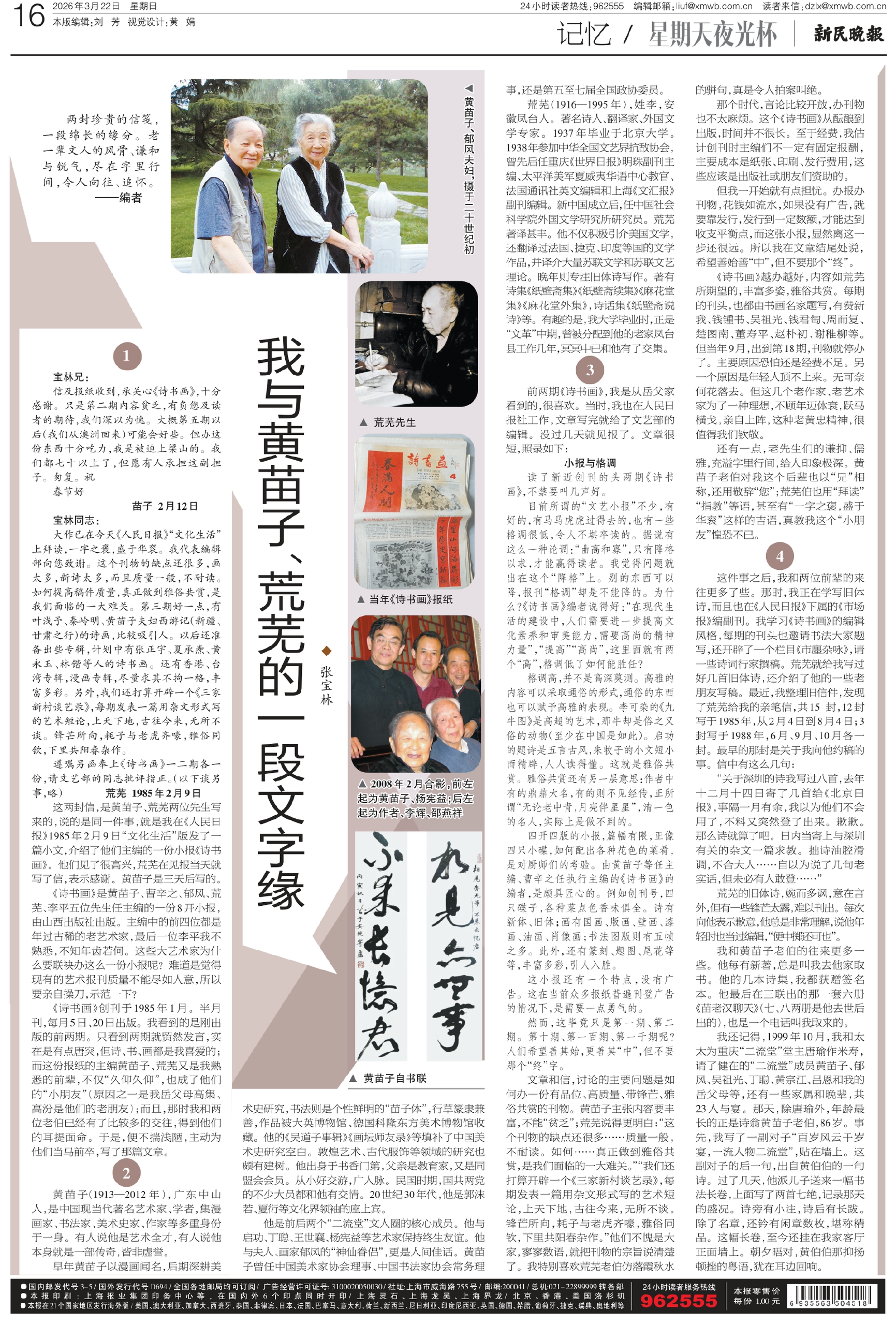 还有一点,老先生们的谦抑、儒雅,充溢字里行间,给人印象极深。黄苗子老伯对我这个后辈也以“兄”相称,还用敬辞“您”;荒芜伯也用“拜读”“指教”等语,甚至有“一字之褒,盛于华衮”这样的吉语,真教我这个“小朋友”惶恐不已。
