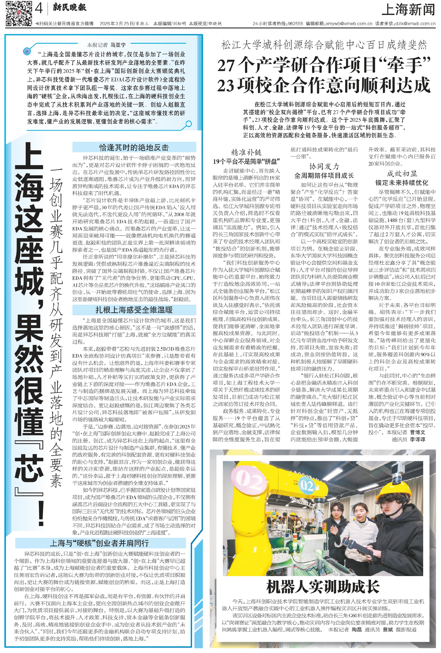 异芯科技的成长,只是“创·在上海”创新创业大赛赋能硬科技创业者的一个缩影。作为上海科创领域的重要连接器与放大器,“创·在上海”大赛早已超越了“比赛”本身,成为上海赋能创业者的重要载体。上海市科技创业中心主任黄丽宏告诉记者,这场以大赛为纽带的创新创业对接,不仅让优质项目脱颖而出,更让大赛的舞台成为链接资源、赋能创业的桥梁。而这,正是上海打造创新创业对接平台的初心。