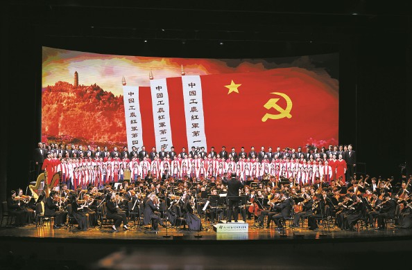 昨晚,第41届上海之春国际音乐节在北外滩友邦大剧院开幕。《永恒的征途——纪念红军长征胜利90周年主题音乐会》隆重上演 本报记者 王凯 摄
