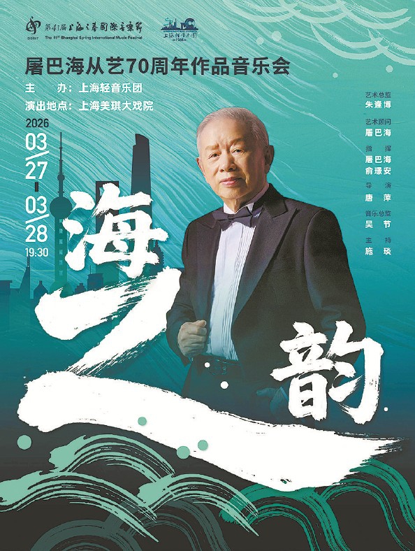 作为第41届上海之春国际音乐节的主体演出,《海之韵——屠巴海从艺70周年作品音乐会》将于3月27日至28日在上海美琪大戏院奏响,这既是对84岁作曲家屠巴海70年音乐生涯的致敬,也是海派音乐发展历程的一次集中回望。