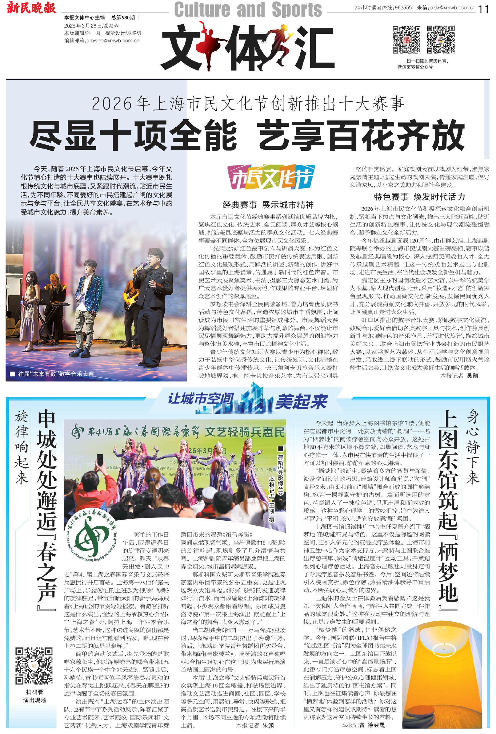 今天,随着2026年上海市民文化节启幕,今年文化节精心打造的十大赛事也陆续展开。十大赛事既扎根传统文化与城市底蕴,又紧跟时代潮流、贴近市民生活,为不同年龄、不同爱好的市民搭建起广阔的文化展示与参与平台,让全民共享文化盛宴,在艺术参与中感受城市文化魅力,提升美育素养。