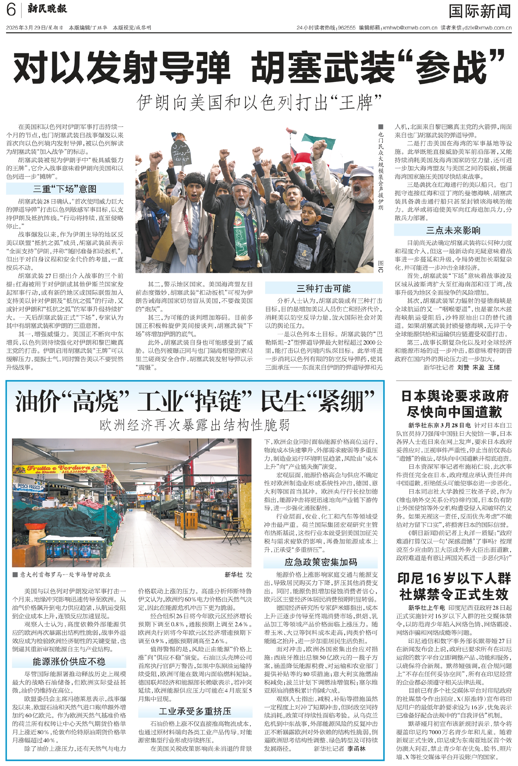胡塞武装27日提出介入战事的三个前提:红海被用于对伊朗或其他伊斯兰国家发起军事行动,或有新的地区或国际联盟加入支持美以针对伊朗及“抵抗之弧”的行动,又或针对伊朗和“抵抗之弧”的军事升级持续扩大。一天后胡塞武装正式“下场”,专家认为其中有胡塞武装和伊朗的三重意图。