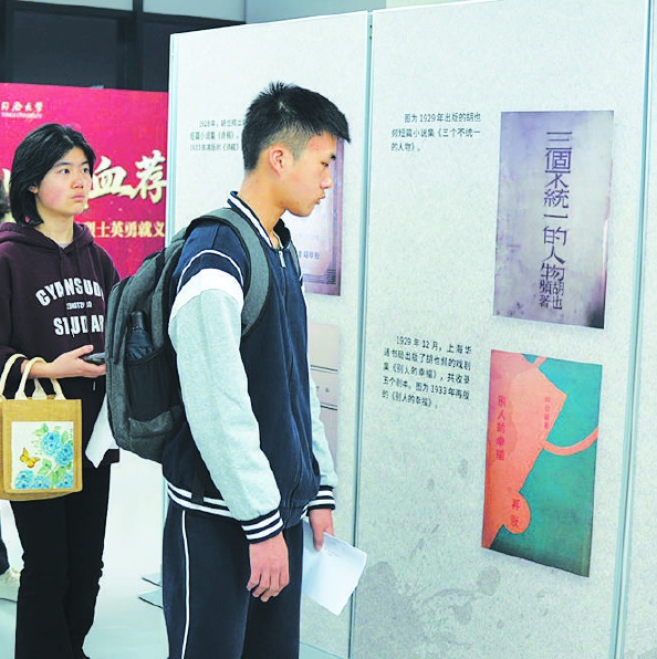 “左联五烈士不仅是文学家,更是坚定的革命者。他们以笔为戈,通过创作唤醒民众、批判黑暗、呼唤光明,为民族解放与人民觉醒英勇斗争。”张瑜是一名现役武警战士,在现场为学生作完展览的导览后表示,自己现在正是和左联五烈士当年差不多的年龄,我们今天不仅是对左联五烈士的缅怀,更是对那段艰苦卓绝革命历史的铭记,“他们当年用生命唤醒了未来”。