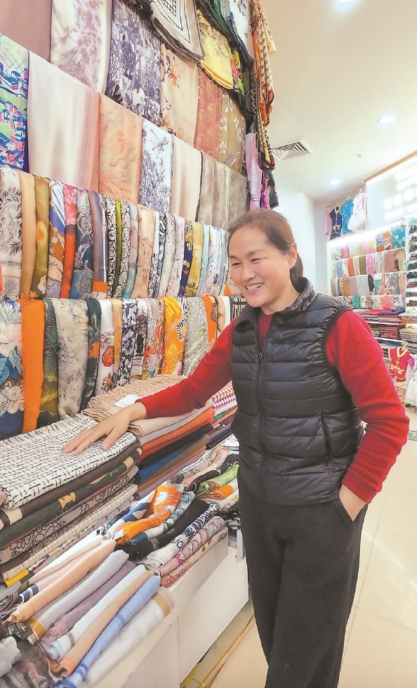 后来,她做起了丝巾生意,开始频繁接触不同国家的人。在南京西路的淘宝城,老外特别多,生意十分红火。淘宝城关闭后,原先的商户分流至各处。新店,该开在哪里呢?2019年,陈菊兰落户南外滩轻纺面料市场,继续经营丝巾店。