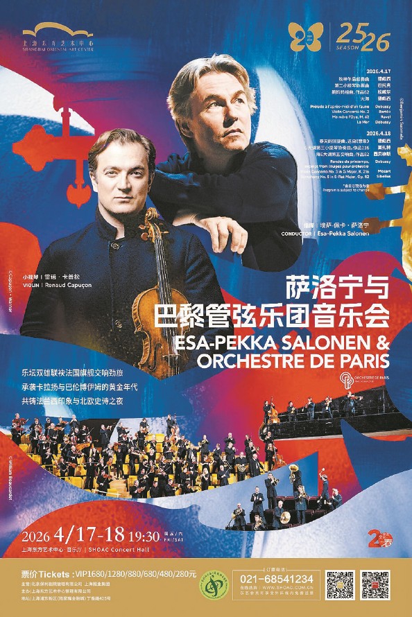 英国钢琴家伊莫金·库珀女爵士将在上海音乐厅奉上两场演出。4月3日,她将携手男高音马克·帕德莫尔完整演绎舒伯特《冬之旅》,4月4日则以独奏勾勒德奥古典主义与浪漫主义的音乐脉络。芬兰指挥大师埃萨-佩卡·萨洛宁与法国巴黎管弦乐团将于4月18日开启申城首秀。这位名指将带来两场风格迥异的音乐会。