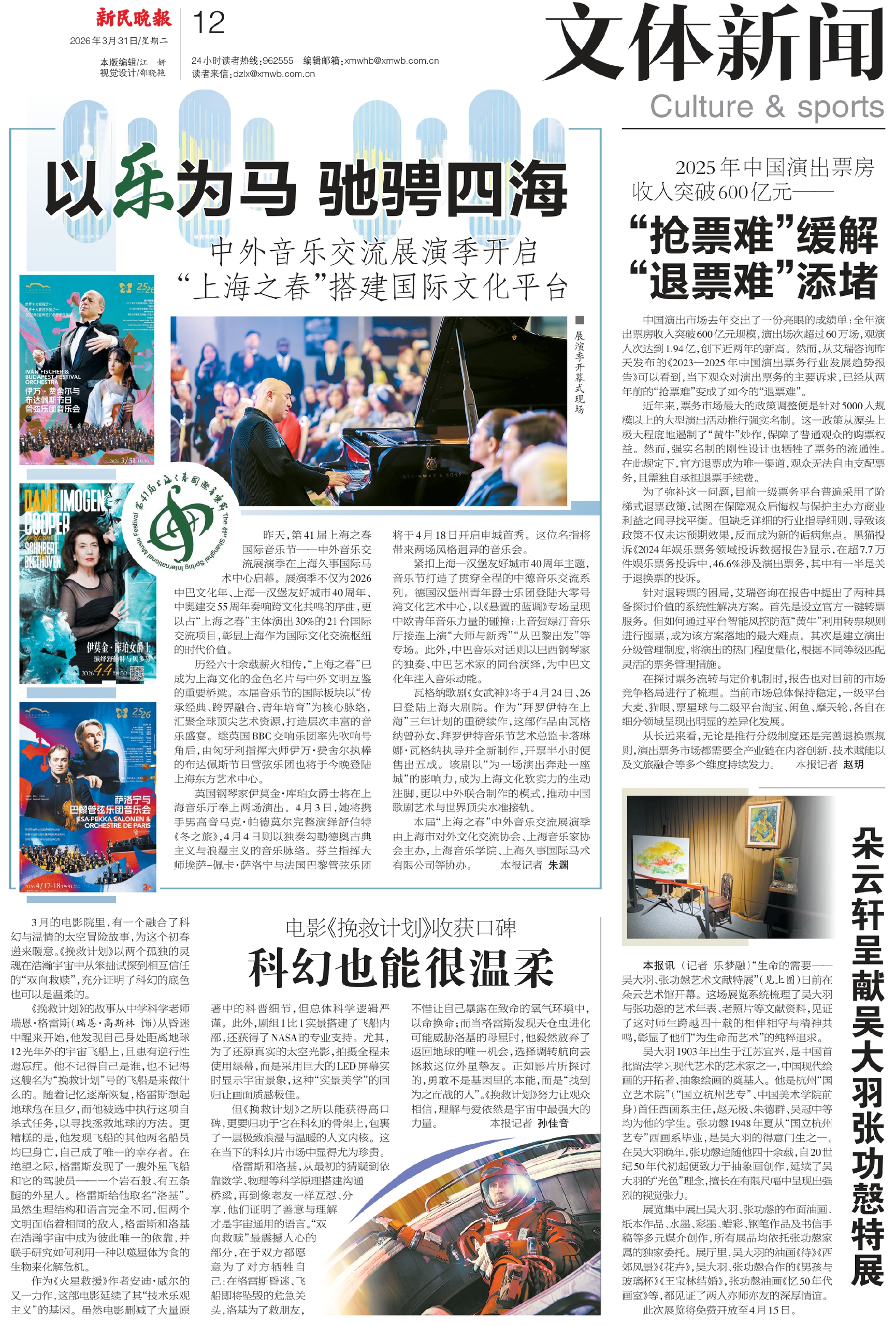 朵云轩呈献吴大羽张功慤特展 “抢票难”缓解“退票难”添堵 科幻也能很温柔 以乐为马  驰骋四海